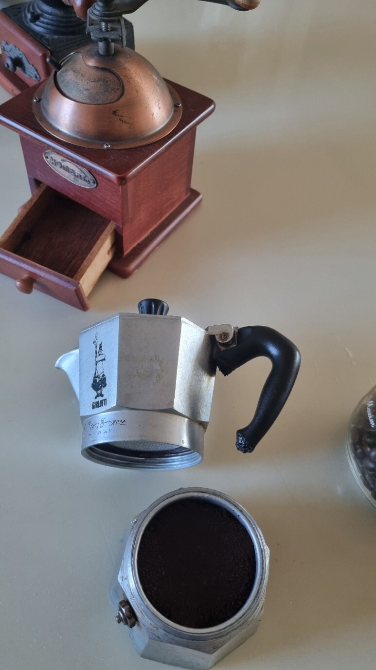 그라인더도 다시 꺼내서 커피를 그라인딩하고
